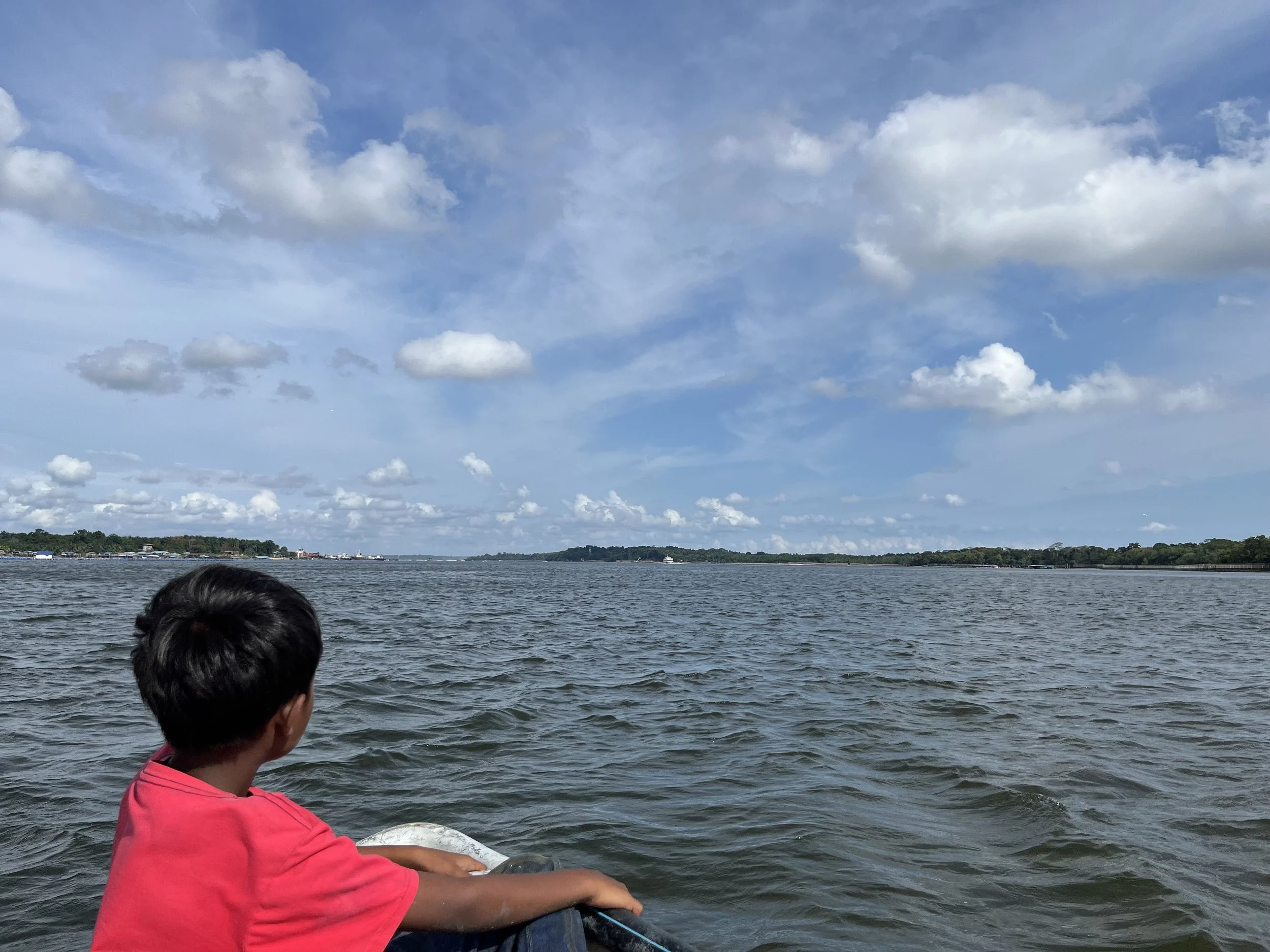 A view of Pulau Ubin (Singapore) on a boat with fishermen from an Orang Seletar village near Pasir Gudang (Malaysia)